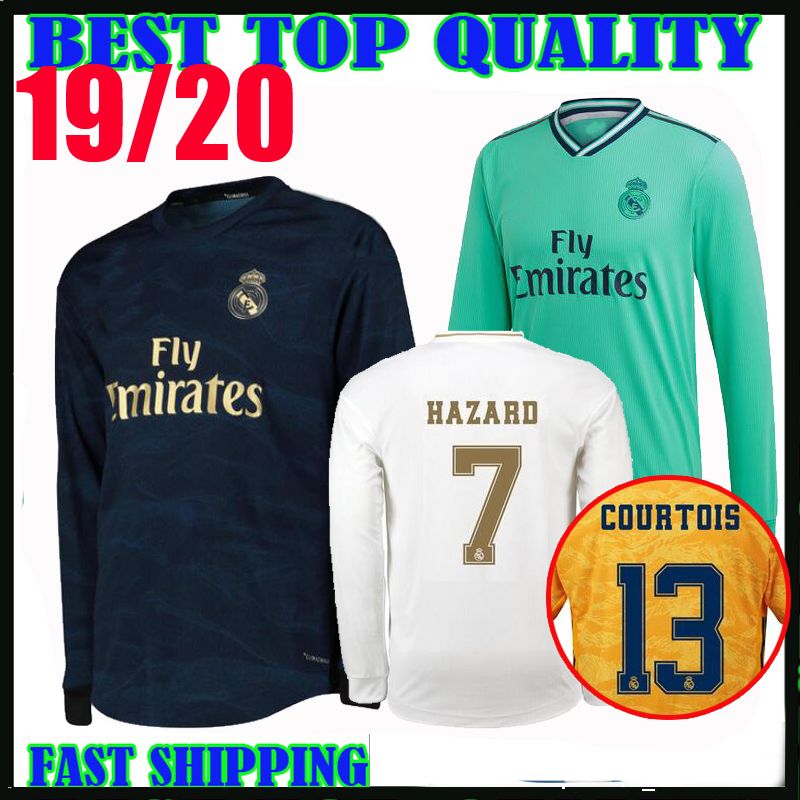 The official home jersey of real madrid for the 2020/21 season with custom print on the back. 20 21 long sleeve real madrides #7 hazard third away soccer jersey 2020 ramos modric asensio shirts isco vinicius jr football un. Long sleeve real madrid goalkeeper jersey 2019 2020 black. At soccerpro.com you'll find the. Find great deals on ebay for real madrid jersey 2019/2020 long sleeve.